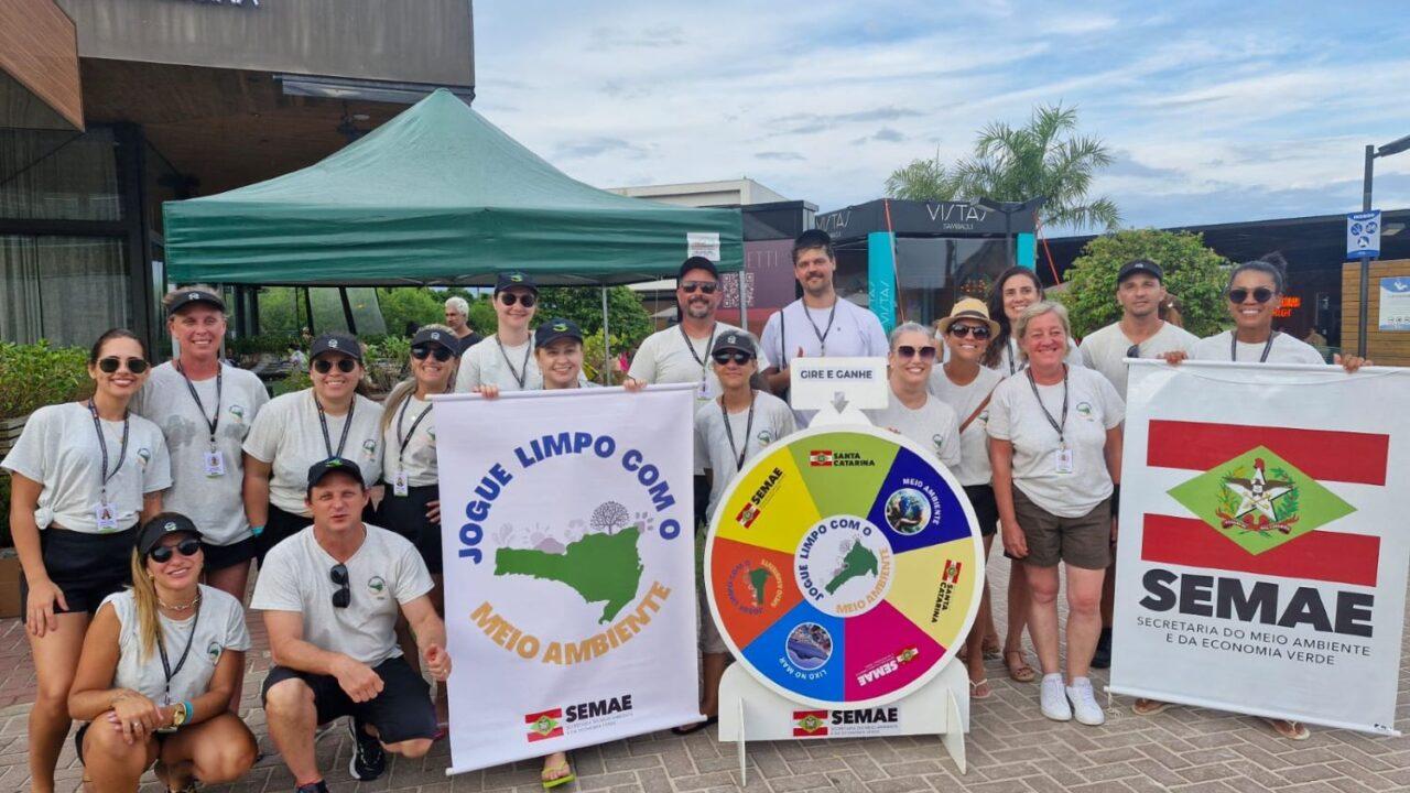 A Secretaria de Estado do Meio Ambiente e Economia Verde (Semae) realiza a ação do programa Jogue Limpo com o Meio Ambiente na praia da Joaquina. Com o objetivo de combater o lixo nos oceanos, a iniciativa busca sensibilizar a população e distribuir brindes ecológicos para promover a educação ambiental.