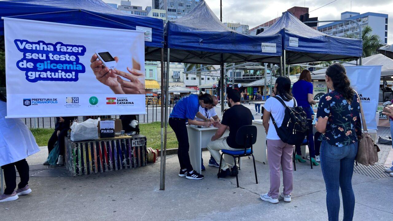 Nesta terça-feira, 26, o Centro de Florianópolis sediou uma importante ação de sensibilização contra o diabetes. Realizada na Praça da Alfândega, a iniciativa beneficiou 650 pessoas, oferecendo exames de glicemia capilar, orientações sobre hábitos saudáveis e encaminhamentos para unidades de saúde em casos suspeitos.