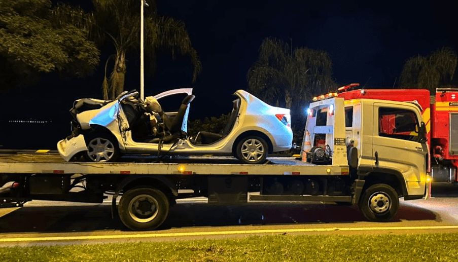 Acidente grave na Avenida Beira-Mar Norte: carro colide com guincho e deixa motorista preso às ferragens