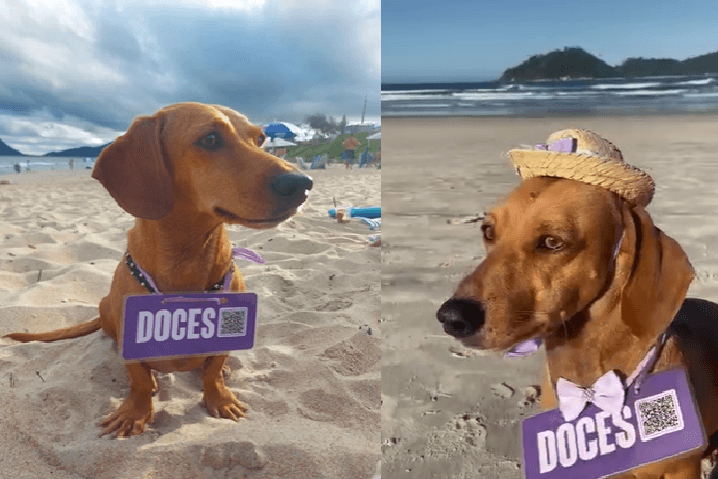 A história da salsichinha vendedora ganhou destaque após compartilhada em um perfil popular nas redes sociais, mostrando como ela se tornou uma atração na praia, atraindo clientes para os doces e proporcionando momentos de alegria para quem cruza seu caminho.