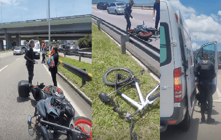 De acordo com informações da Guarda Municipal, o ciclista foi atingido pela moto ao atravessar fora da faixa de pedestres, resultando em ferimentos que demandaram atendimento médico.
