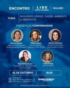 Participe do evento exclusivo do LIDE Mulher SC com grandes líderes e especialistas, abordando o papel da mulher nos negócios e a importância da saúde no mês do Outubro Rosa. O Encontro do LIDE Mulher SC O LIDE Mulher, braço do maior grupo empresarial da América Latina dedicado à valorização do papel feminino nos Boards e C-Level, realizará um evento […]