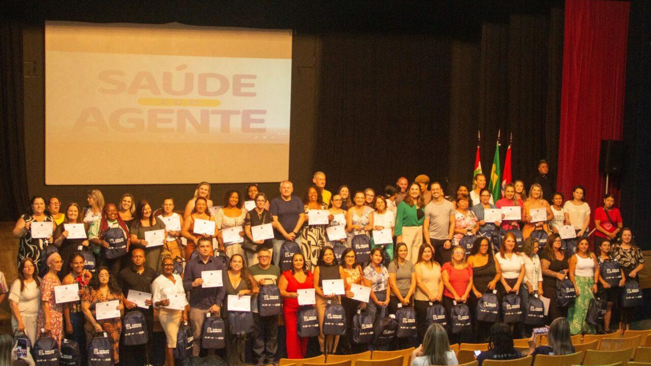 Nesta sexta-feira (31), a Prefeitura de São José realizou a formatura de 67 participantes do Programa Saúde com Agente, com 59 Agentes de Combate às Endemias (ACE) e 8 Agentes Comunitários de Saúde (ACS). Além da certificação e entrega de kits para os formandos, todos os 213 ACS receberam um tablet, ferramenta essencial para otimizar o trabalho em campo, garantindo maior eficiência na coleta e alimentação de dados informatizados do Ministério da Saúde.