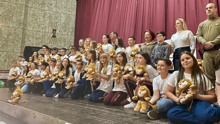 Na noite de quarta-feira, 4, 274 alunos do 5º ano do ensino fundamental, do ensino médio e da Associação de Pais e Amigos dos Excepcionais (Apae) participaram da formatura do Programa Educacional de Resistência às Drogas e à Violência (Proerd), da Polícia Militar de Santa Catarina (PMSC), realizada no Cine Teatro Ópera, em Porto União. O Proerd busca conscientizar crianças e adolescentes sobre os riscos associados ao uso de drogas lícitas e ilícitas, promovendo valores de uma vida saudável e responsável.