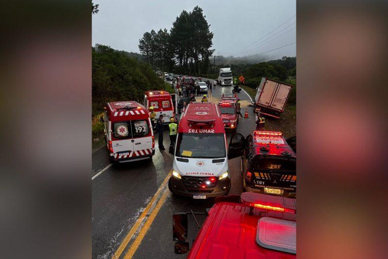 No caminhão, os dois ocupantes saíram ilesos e não precisaram de atendimento médico. No carro, porém, a situação foi muito mais grave. A passageira do banco da frente conseguiu sair sozinha do veículo, embora apresentasse dores na lombar e na região cervical. Ela recebeu atendimento no local. Uma das vítimas que estava no banco traseiro, com ferimentos graves no rosto e no crânio, foi retirada pelos bombeiros em estado crítico e encaminhada ao hospital após receber atendimento avançado. A outra pessoa no banco traseiro sofreu uma fratura exposta em uma das pernas. Ela também foi resgatada e conduzida para cuidados médicos. Infelizmente, a motorista do Chevrolet Corsa, uma mulher de 42 anos, ficou presa às ferragens e foi encontrada sem sinais vitais pelas equipes de resgate.